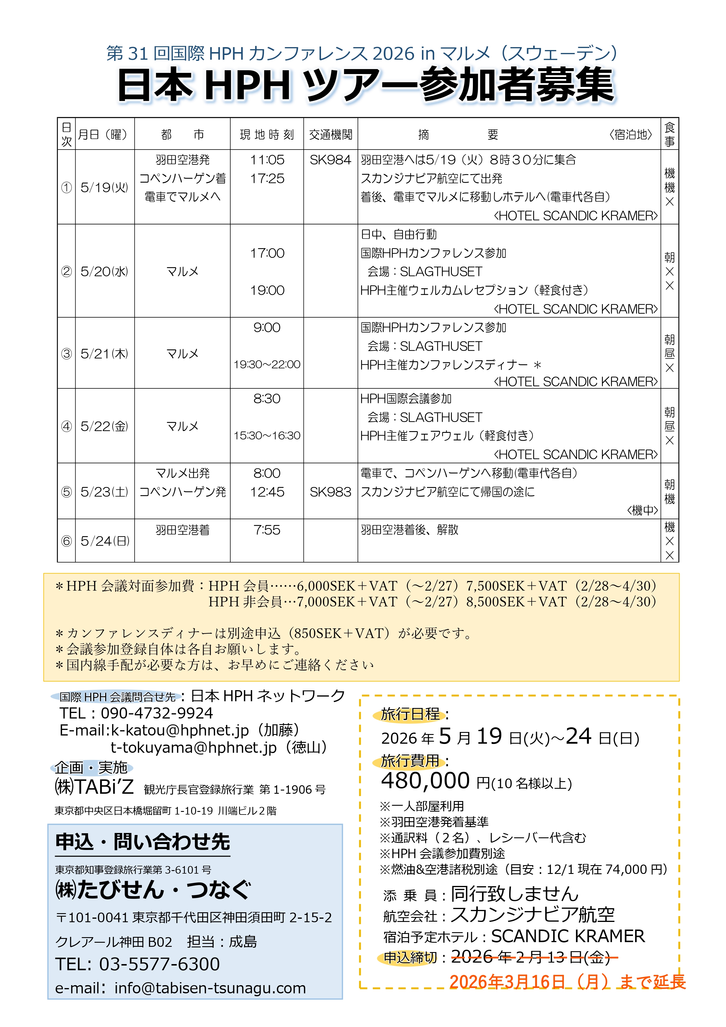 また、2026年は、現在ヨーロッパで最も積極的に活動を展開しているナショナルHPHネットワークの1つであり60を超える加盟組織を擁するスウェーデンHPHネットワークの結成30周年でもあります。
